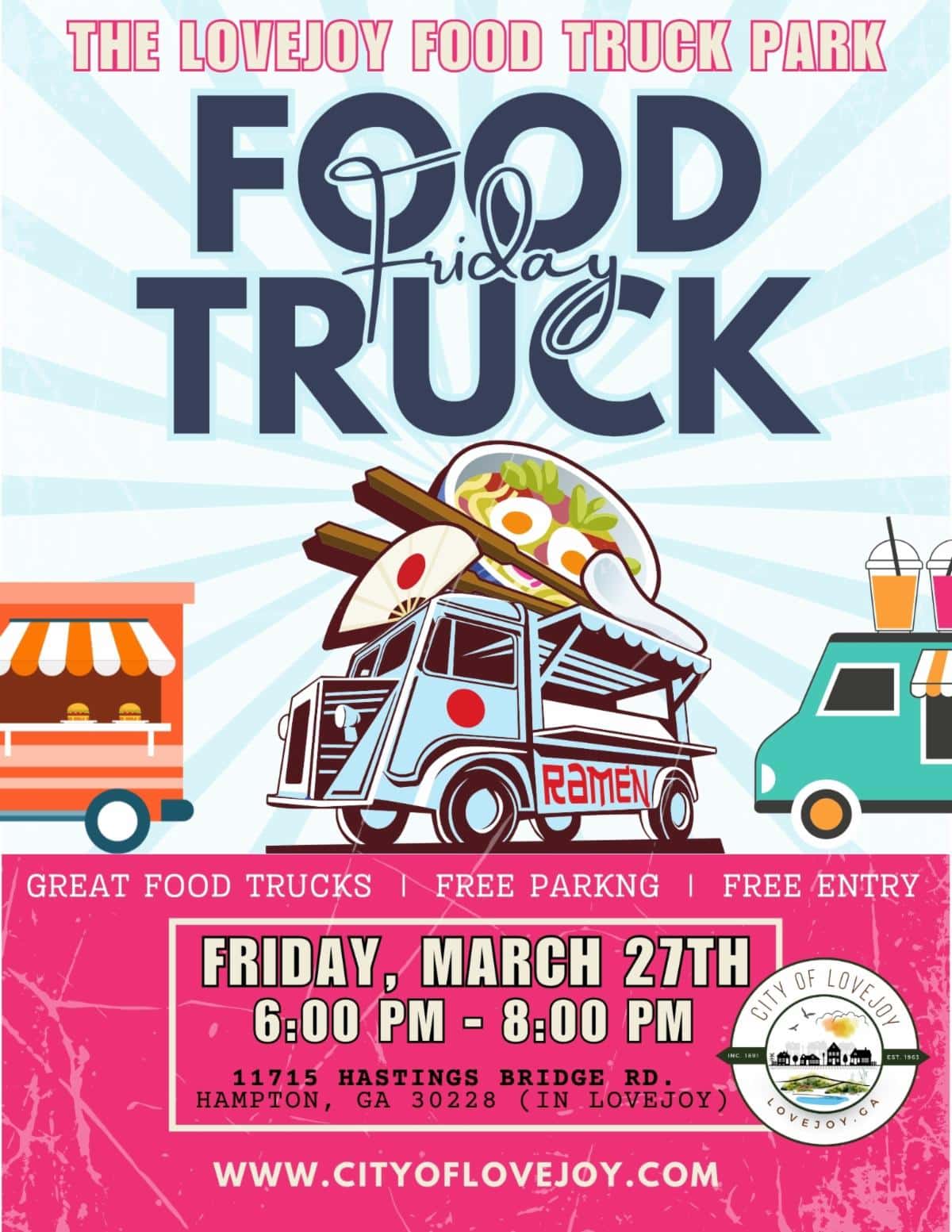 Lovejoy Food Truck Park 11715 Hastings Bridge Rd, Hampton, GA, United StatesJoin the City of Lovejoy, GA as the welcome the first Food Truck Friday on the season. The Lovejoy Food […]